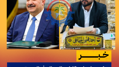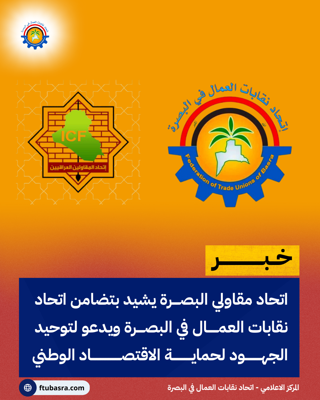 اتحاد مقاولي البصــــرة يشيد بتضامن اتحاد نقابات العمــــــال في البصــــرة ويدعو لتوحيد الجهـــــــــود لحمايـــــــــــة الاقتصـــــــــــــــــاد الوطني