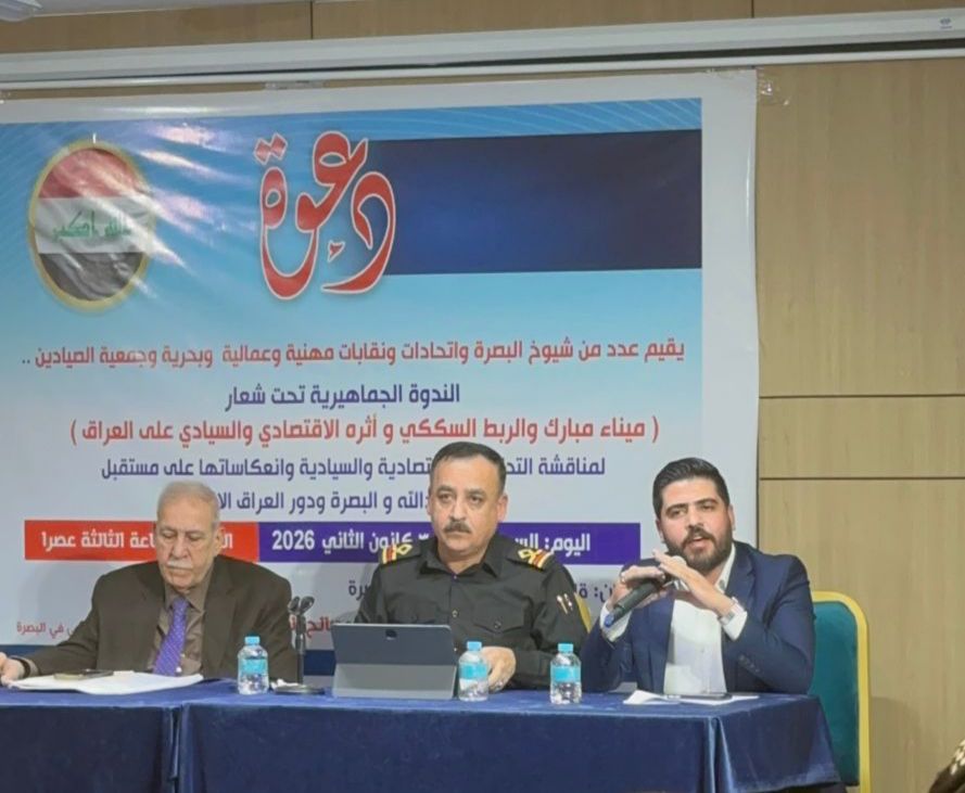 ندوة جماهيرية في البصرة تناقش تداعيات ميناء مبارك والربط السككي على السيادة والاقتصاد العراقي